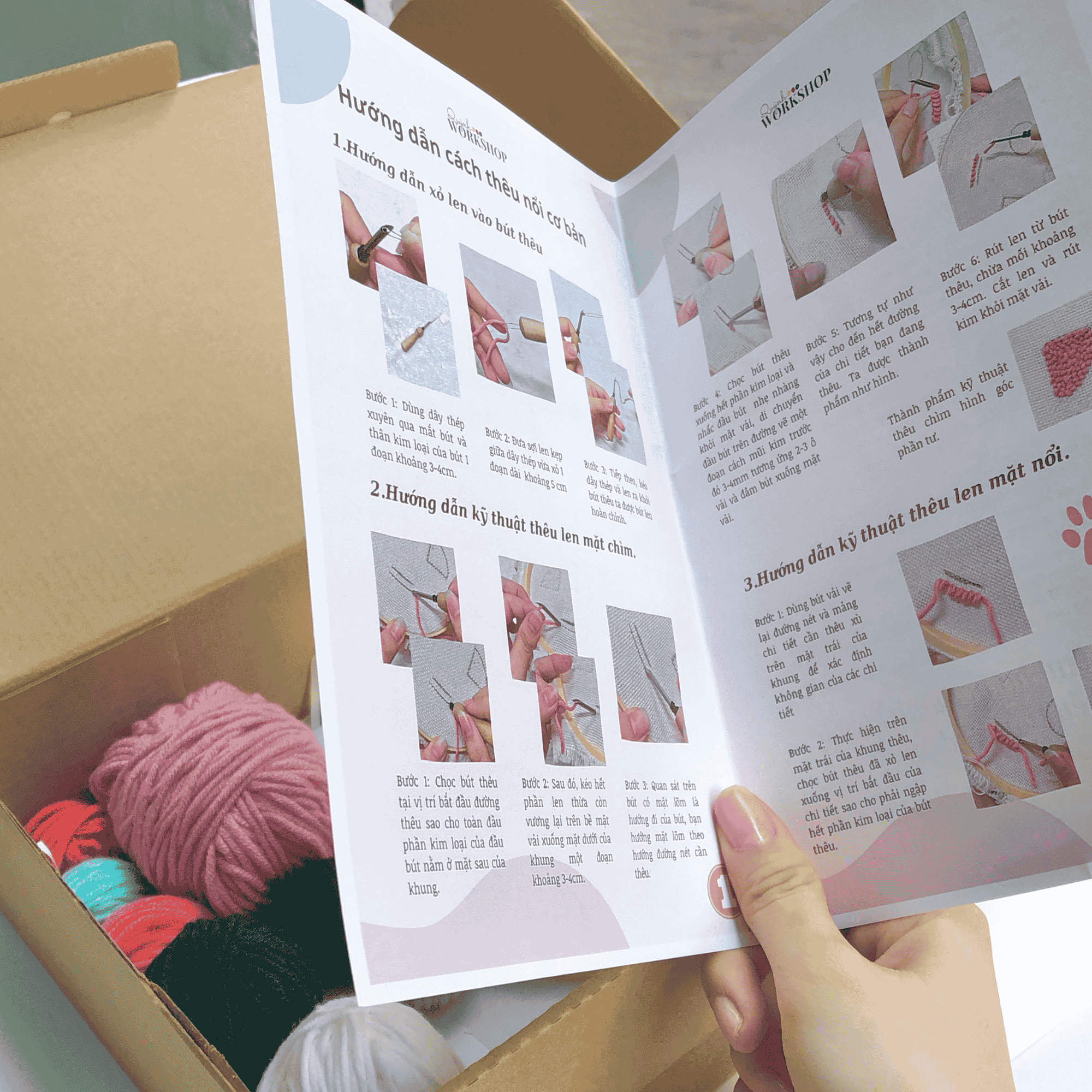 Những bộ kit THÊU LEN XÙ của chúng mình không chỉ là một thú vui mà còn là cánh cửa dẫn đến bình yên. Mỗi bộ kit đi kèm với mọi thứ bạn cần để bắt đầu hành trình vào nghệ thuật thêu len: một mẫu thiết kế cẩn thận, sợi len chất lượng cao với bảng màu lấy cảm hứng từ thiên nhiên, một kim thêu chắc chắn và một khung vải sẽ trở thành nền tảng cho tác phẩm hoa của bạn.