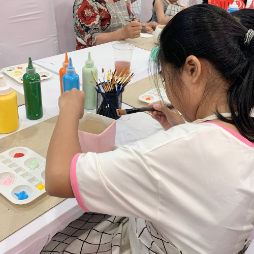 Under the guidance of skilled artists from QUYNHWORKSHOP, little hands carefully painted, creating a flurry of colors on terra cotta and canvas. Every stroke was a testament to the innocence and wonder that children bring into the world. The pots, once plain and simple,