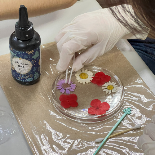 Khi buổi workshop diễn ra, mỗi người tham gia cẩn thận chọn lựa hoa, sắp xếp chúng một cách tinh tế để lưu giữ một khoảnh khắc trong thời gian, một kỷ niệm đáng trân trọng. Dưới sự hướng dẫn của những nghệ nhân tài ba từ QUYNHWORKSHOP, các thành viên đã pha trộn nhựa resin và khéo léo xếp lớp với những loài hoa mình yêu thích, tạo nên không chỉ những chiếc lót ly mà còn là những kỷ vật ngập tràn cảm xúc và câu chuyện.