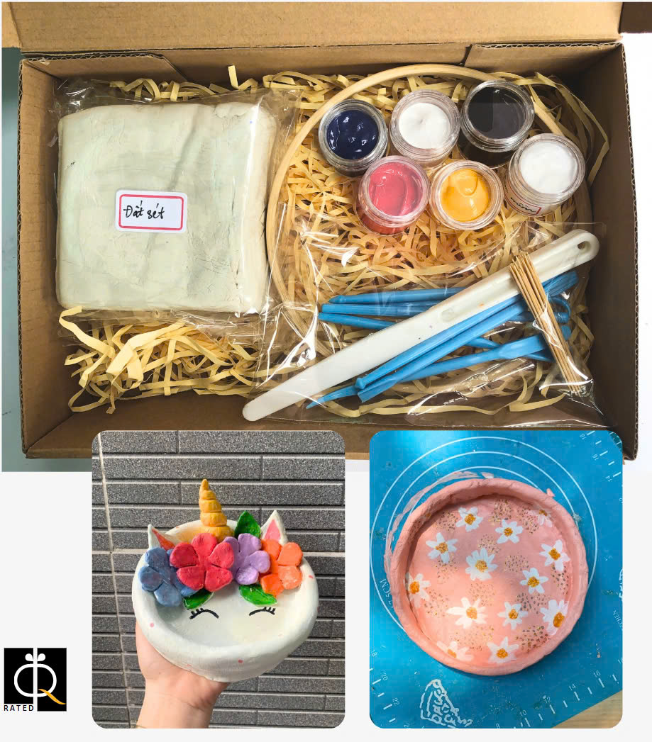 | Bộ KIT đất sét tự khô | Không cần lò nung, dễ sử dụng | Đất sét, dụng cụ tạo hình, màu nước, cọ, khay đựng | 160.000 |