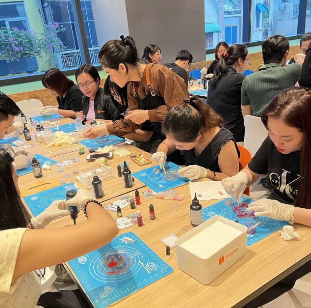 Buổi team-building đầy cảm hứng của Shopee đã đưa tập thể nhân viên bước vào thế giới thủ công mỹ nghệ với workshop “Làm Nến Hình Bánh và Lót Ly Nhựa Resin” rực rỡ sắc màu. Tại trụ sở chính sôi động của Shopee, 40 nhân viên đã tạm rời khỏi những thuật toán và con số để cầm lấy bấc nến và nhựa resin, cùng nhau thổi hồn sáng tạo vào những sản phẩm thủ công độc đáo.