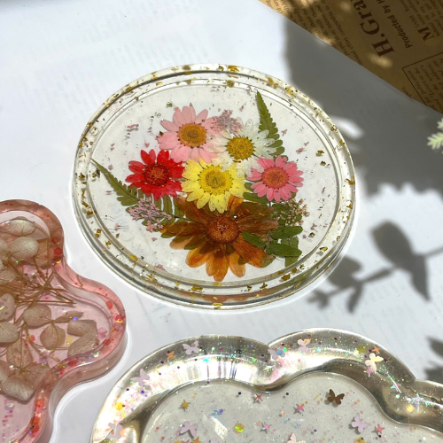 | Resin lót ly nghệ thuật | 1 sản phẩm resin | Kết hợp hoa ép, logo tour hoặc tên đoàn |